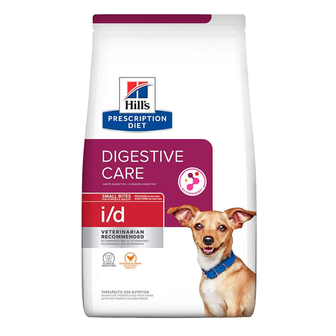 Prescription Diet Digestive Care i/d es un concentrado para perros con estómagos sensibles, pues es un concentrado especialmente creado para el cuidado digestivo y para tratar los trastornos digestivos que puedan presentarse en perros. Será la opción ideal para ayudar a su perro a sentirse mejor y a tener una buena digestión. Es un concentrado rico en nutrientes que contribuirá a una sana y balanceada nutrición que viene acompañada con un rico y palatable sabor a pollo. Contiene proteínas fáciles de digerir, antioxidantes, vitaminas y minerales. Rico en fibras prebióticas que facilitan la digestión y además promueven el desarrollo de buenas bacterias intestinales que benefician la flora intestinal. Este concentrado facilitará la absorción de nutrientes y promoverá el equilibrio digestivo. Sus croquetas son pequeñas, ideales para perros de razas medianas y pequeñas. Además, contiene ácidos grasos omegas 3 y 6 que favorecerán la salud de la piel y el brillo del pelaje.